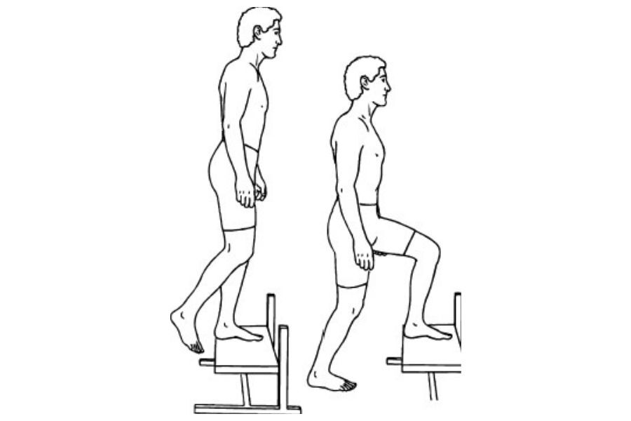Οι ασκήσεις step-ups με ανάβαση σε σκαμπό προσομοιώνουν τις κινήσεις της καθημερινότητας, με το ύψος του σκαμπού να αυξάνεται σταδιακά. Η πλήρης έκταση σε καθιστική θέση και οι διατάσεις δικεφάλου μηριαίου ολοκληρώνουν το πρόγραμμα. Το περπάτημα μπορεί να ξεκινήσει περίπου 2 εβδομάδες μετεγχειρητικά, ενώ η κολύμβηση επιτρέπεται μετά από 4-6 εβδομάδες ως δραστηριότητα χαμηλής κρούσης. Η επιστροφή στην οδήγηση εξαρτάται από το ποιο πόδι χειρουργήθηκε και συνήθως είναι δυνατή μετά από 4-8 εβδομάδες. Το τρέξιμο θα πρέπει να αποφεύγεται για τουλάχιστον 6-8 εβδομάδες.